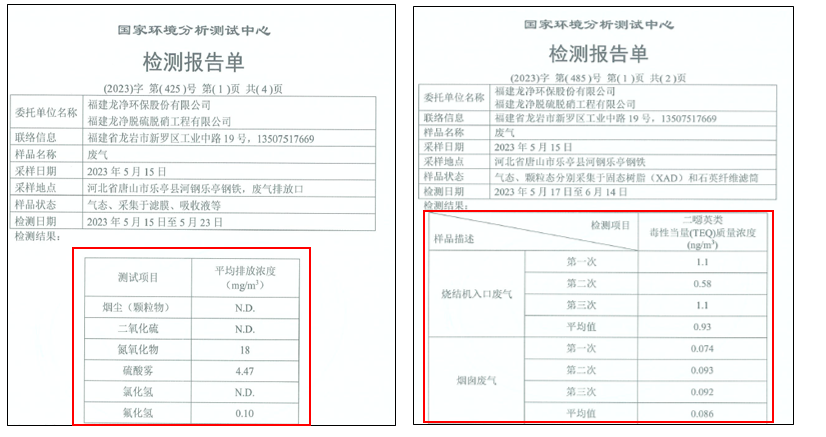 图2. 乐钢1#烧结机烟囱出口多种重金属浓度检测报告(均远优于相关国家标准)