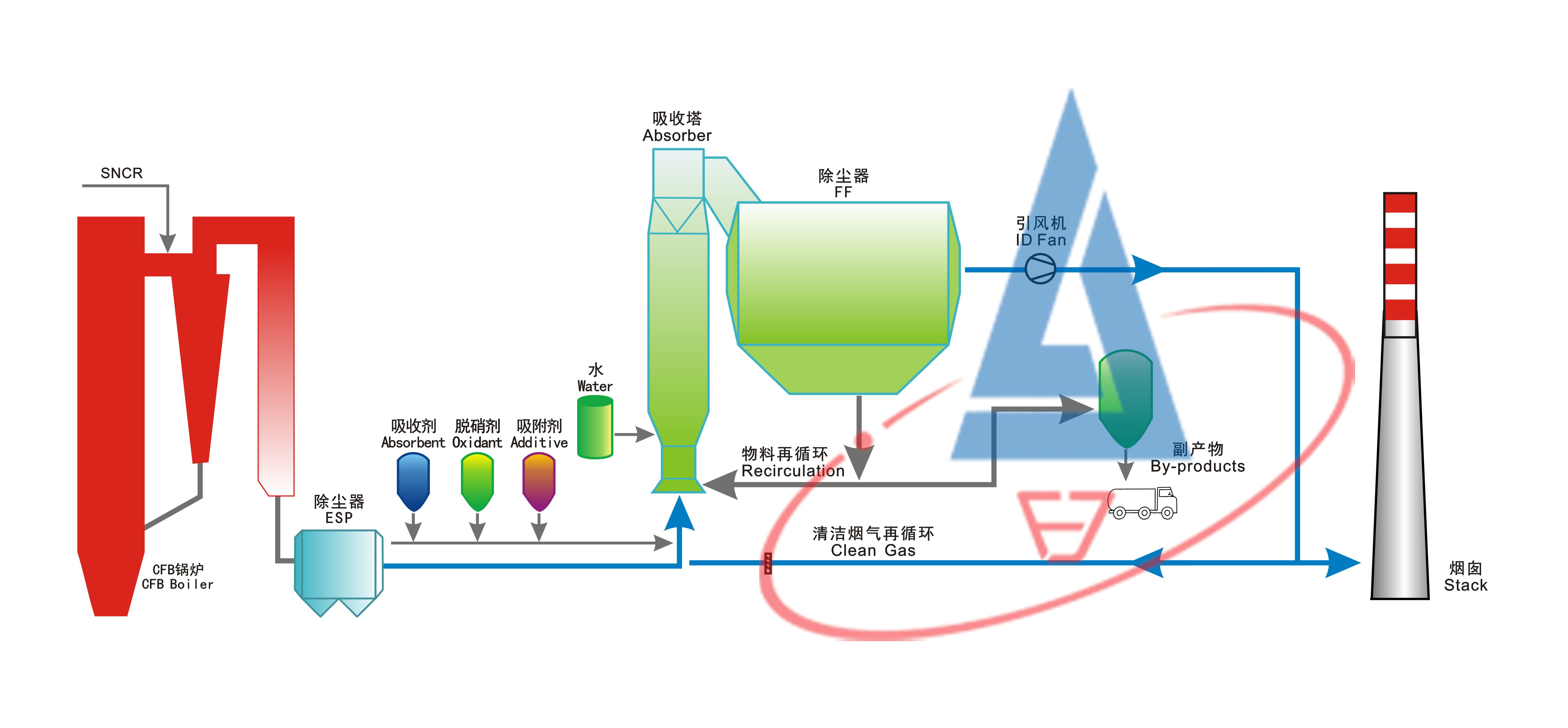 该技术在缺水地区、CFB锅炉、中低硫烟气、多污染物治理的工业烟气等场合具有很好的技术经济性,截止2015年底已在广州石化、山西国金、国峰、河曲、福建龙岩、永安、内蒙汇流河、杭州等地区的40多个项目得到成功应用。